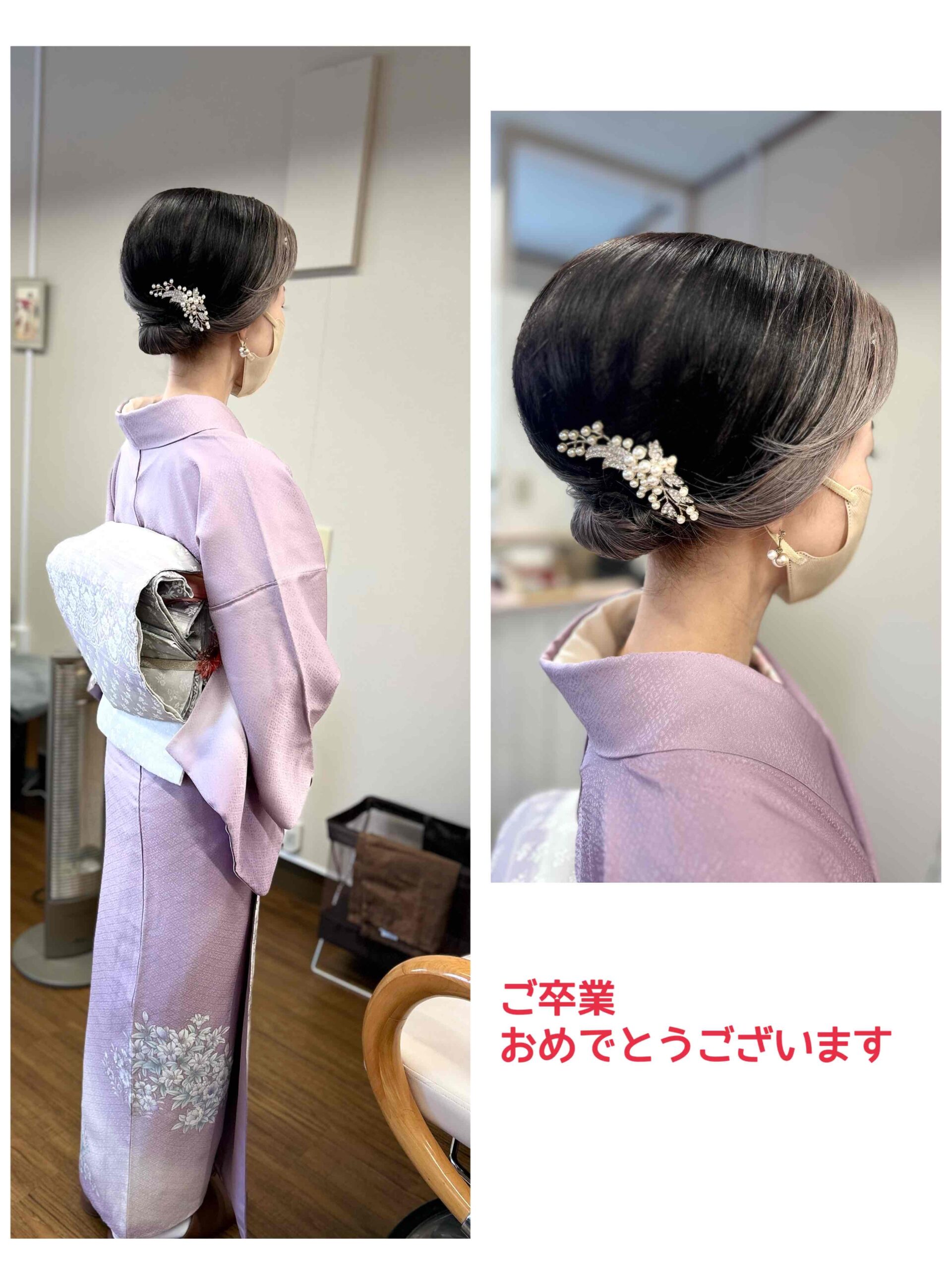 卒業式にご出席されるお母様の 訪問着の着付けとヘアセットをさせていただきました。
